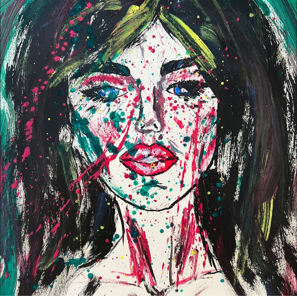 L'autoritratto di Martina Panno trasmette un impatto visivo forte e viscerale, e' caratterizzato da una potente espressività cromatica e da tratti decisi. La figura centrale, è raffigurata in modo stilizzato ma carico di emotività. I colori sgargianti - in particolare il rosso, il verde e il fucsia - si combinano con schizzi di vernice che sembrano voler rompere la staticità dell'immagine, creando un senso di movimento e caos emotivo. Questi elementi suggeriscono tensione, vitalità e forse anche una sorta di conflitto interiore. La qualità pittorica è marcatamente espressionista: i tratti sono liberi, spontanei e impulsivi, dando l'impressione di un'opera creata in un momento di "urgenza emotiva". I contorni del volto e del busto sono delineati in modo deciso ma non realistico, enfatizzando appunto l'interiorità emotiva più che la somiglianza esterna. Le pennellate ampie e graffianti, insieme agli schizzi, richiamano lo stile dell'action painting, influenzato da artisti come Jackson Pollock, combinato con un approccio più figurativo che potrebbe richiamare l'espressionismo astratto. Le emozioni trasmesse sono ambivalenti: la sensualità della figura si mescola con un senso di vulnerabilità e forse di aggressività, accentuato dall'uso del rosso che può evocare sia passione che dolore. Gli schizzi di colore, quasi come ferite o lacrime, sembrano parlare di una lotta interiore, mentre il contrasto tra la forza del tratto e la fragilità del volto crea un dialogo visivo intrigante. In sintesi, il dipinto riesce a coinvolgere lo spettatore grazie alla sua intensità emotiva e al linguaggio visivo audace, che bilancia la rappresentazione figurativa con elementi astratti ed energici.