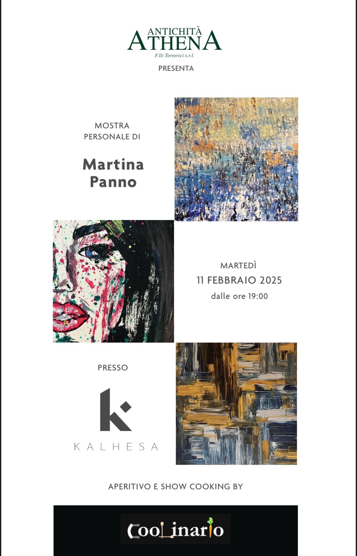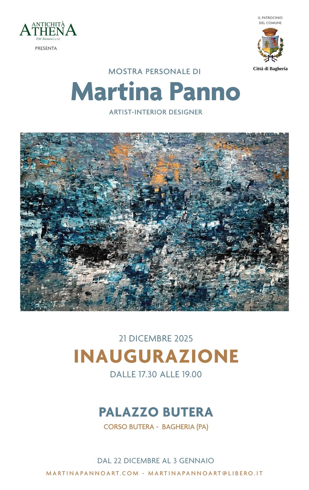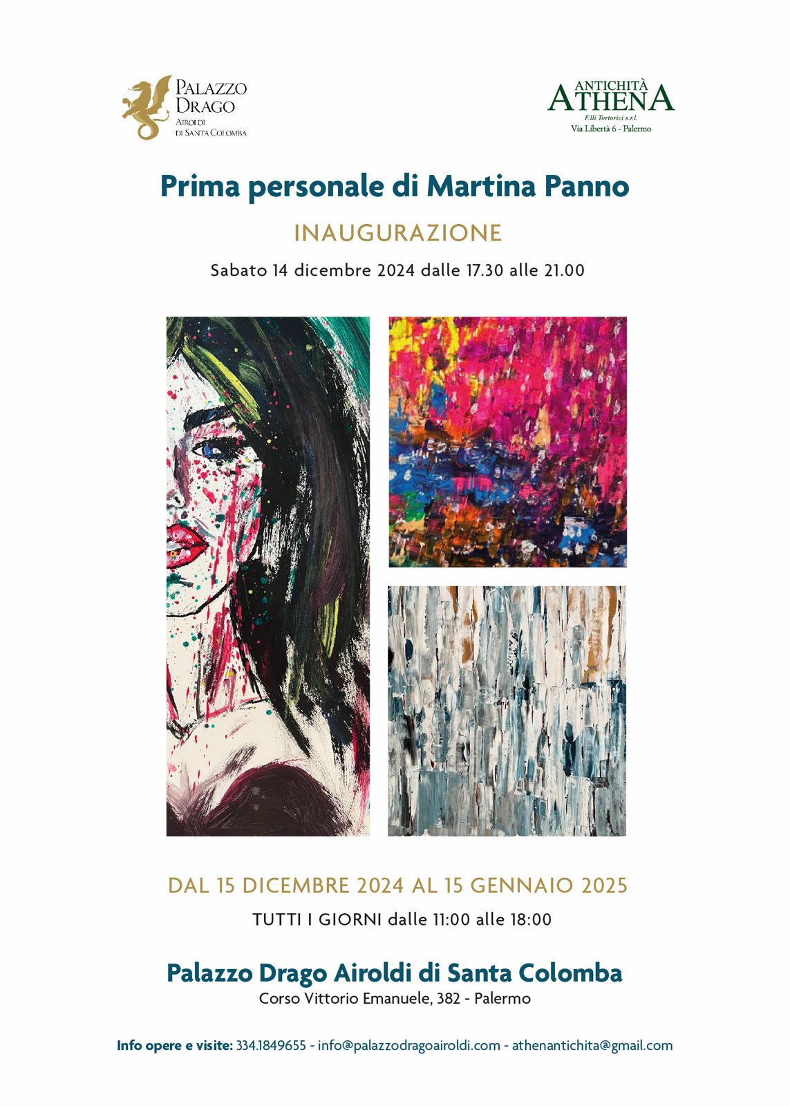 Martina Panno nasce a Palermo il 3.5.1993, sin da piccola disegna e dipinge per hobby, da più grande invece utilizza la pittura per esternare le emozioni e i sentimenti che a parole le viene difficile esternare. Le opere da lei realizzate sono totalmente frutto dell'impeto dal momento che non ha mai studiato pittura o disegno, infatti ha conseguito gli studi classici e successivamente si è iscritta alla facoltà di Scienze della Comunicazione. Ha completato il percorso di studi conseguendo un master in interior design. Le tecniche utilizzate sono molteplici come gli strumenti di pittura, che possono essere i pennelli, la spatola, i cartoncini, dei legnetti, talvolta anche le dita stesse, tutto le può essere utile al fine di mettere su tela un pensiero, un luogo, un’emozione, una sensazione. Nella breve carriera artistica ha già esposto in diverse gallerie in Italia e anche all’estero, per esempio Dubai, e partecipato a qualche mostra collettiva. Ha già ricevuto le critiche di personaggi illustri del mondo dell’arte come Plinio Perilli e Josè Van Roy Dalì, figlio del grande Salvador, della curatrice e critica d'arte Maria Celeste Bertolino e partecipato a dei concorsi nazionali. A dicembre 2024 ha inaugurato la sua "Prima Personale" a Palazzo Drago Airoldi di Santa Colomba, a Palermo, e a febbraio 2025 una seconda personale nei locali del Kalhesa, sempre a Palermo. In seguito ha fatto una collaborazione con il noto marchio di design Roche Bobois con sede a Palermo. Il 21 dicembre 2025 ha inaugurato una mostra a Palazzo Butera di Bagheria (Pa) e il 20 giugno 2026 esporrà un'opera a Cannes (France).